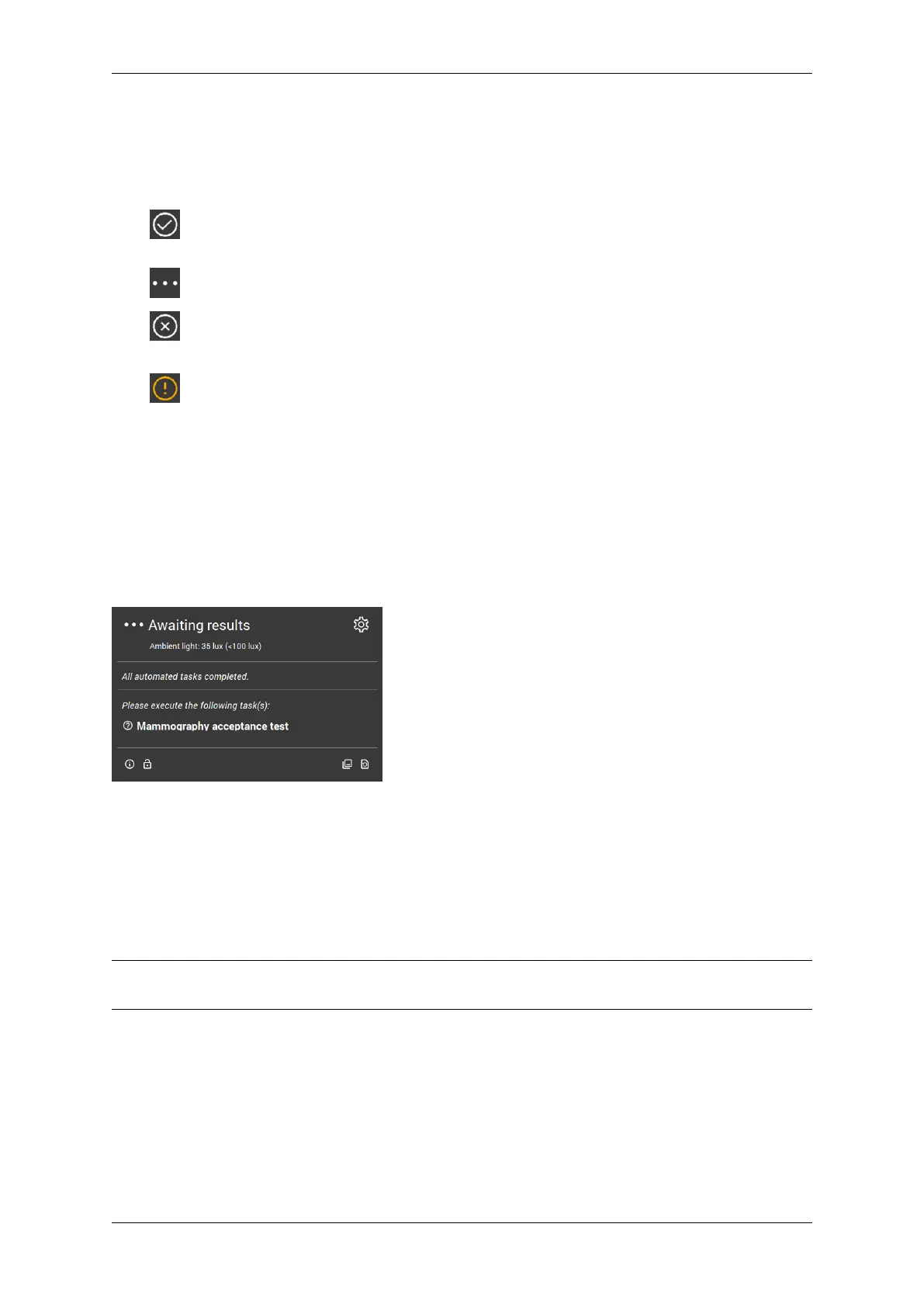 De gecombineerde status van kalibratie en QA-tests wordt samengevat in één QA-statusindicator. Deze kan de vol-