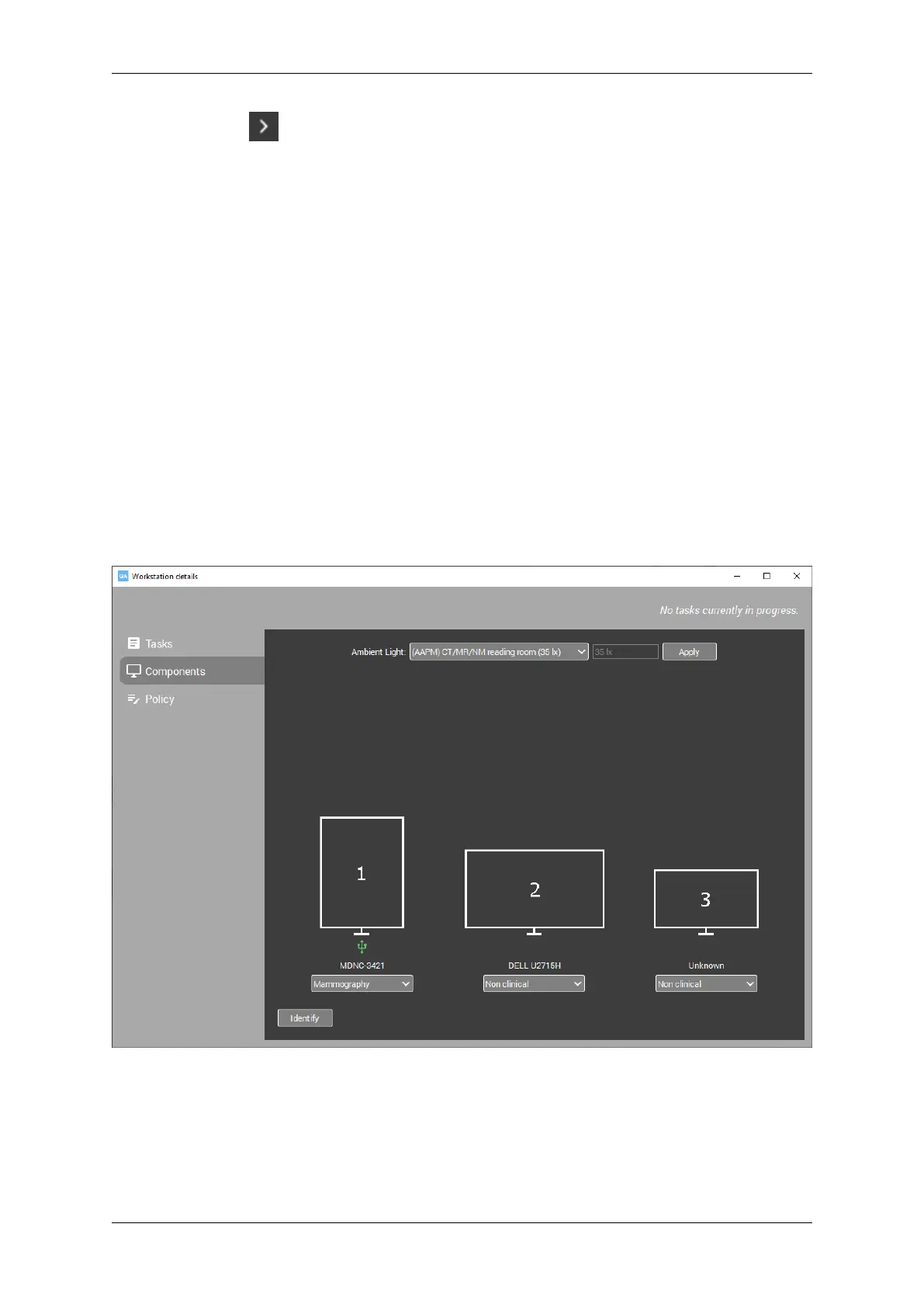 Het venster componenten toont welke beeldschermen momenteel zijn aangesloten op het werkstation. Voor elk