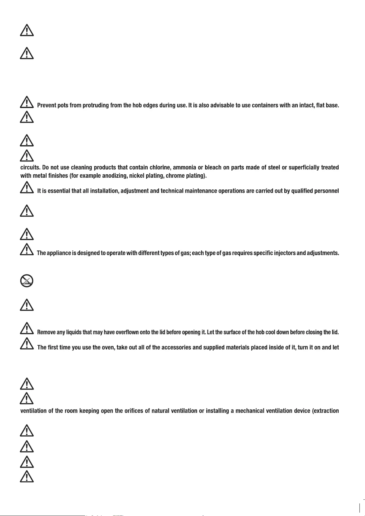 To make any change, it is always necessary to disconnect the appliance from the power mains, and temporarily cut off the gas