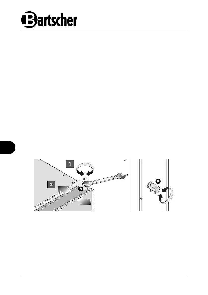– Gebruik een sleutel van 13 mm om de deurafstand aan te passen door
