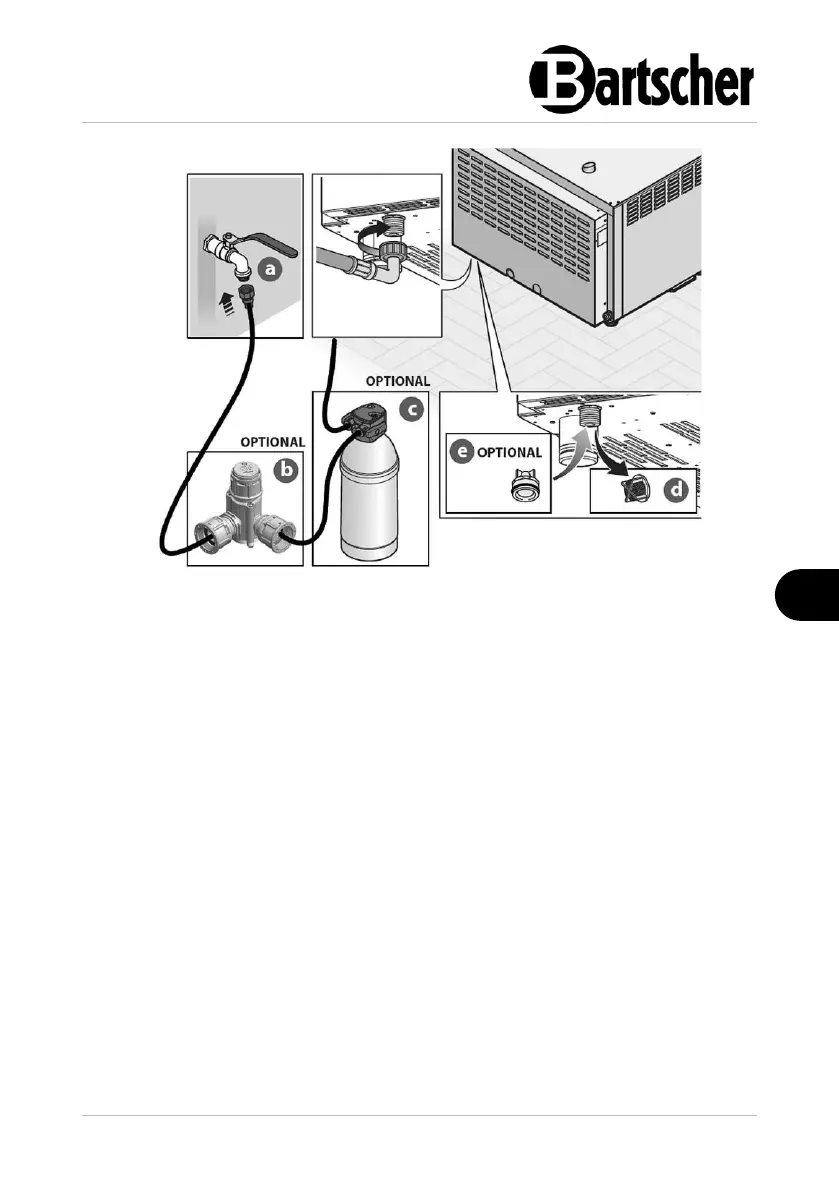 – Indien nodig kan het filter d, dat al op de inlaataansluiting is