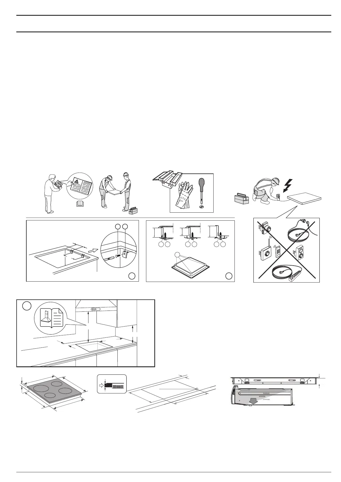 • Das Kochfeld muss in eine mindestens 20 mm tiefe Arbeitsplatte eingelassen werden.