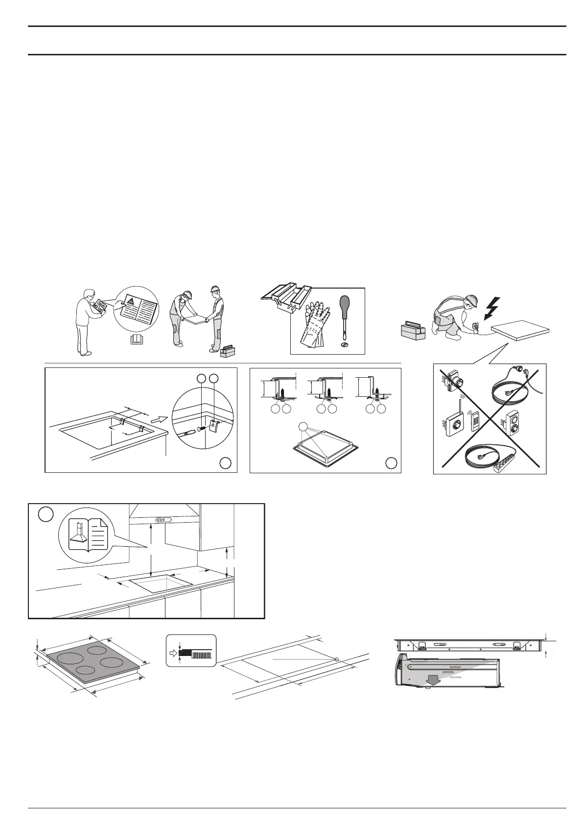 come illustrato, rispettando le distanze specicate. Installare il piano di cottura nel piano di lavoro.