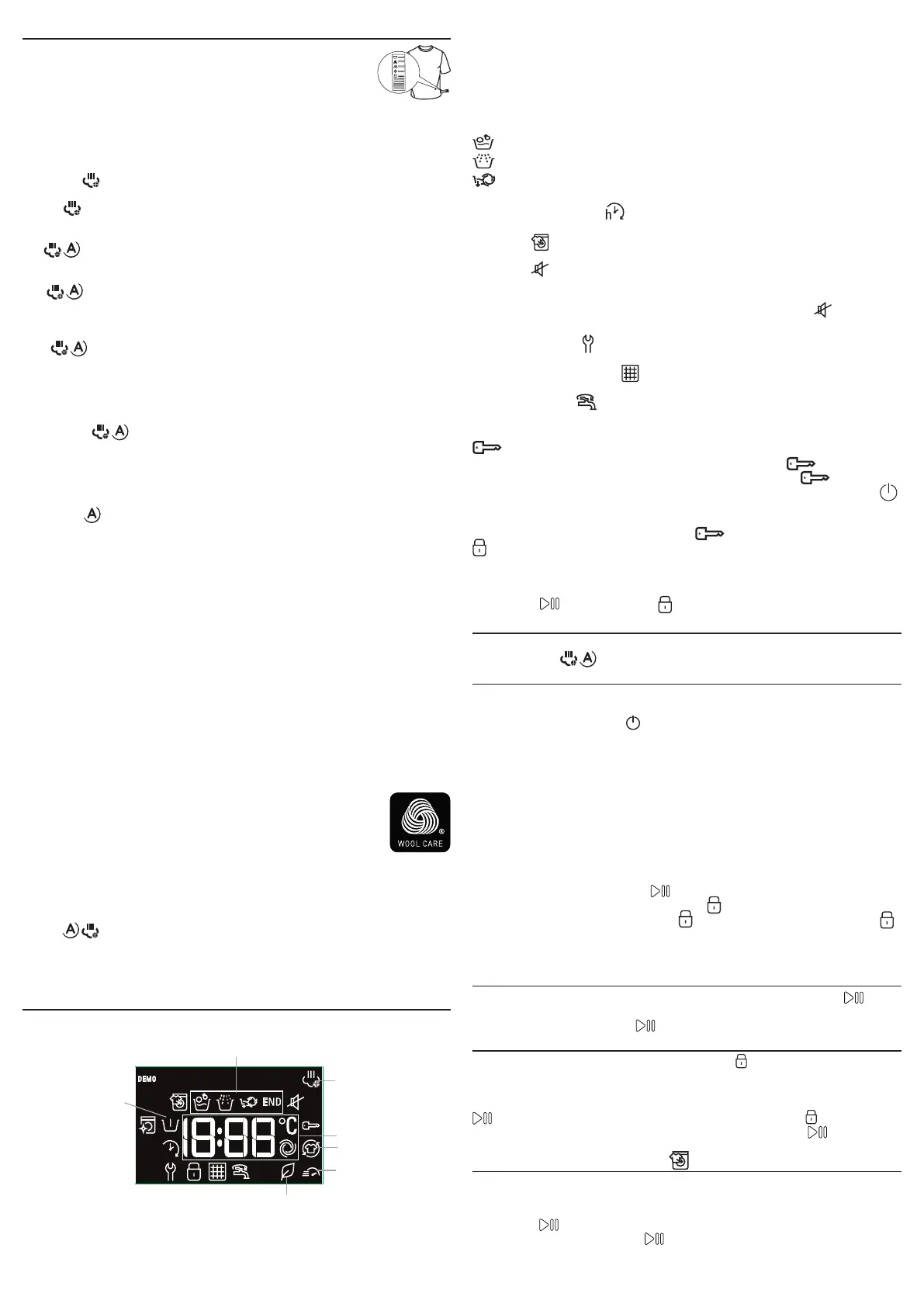 Die Referenzsymbole C zeigen die verfügbaren Waschoptionen an (siehe Abschnitt „Optionen“).