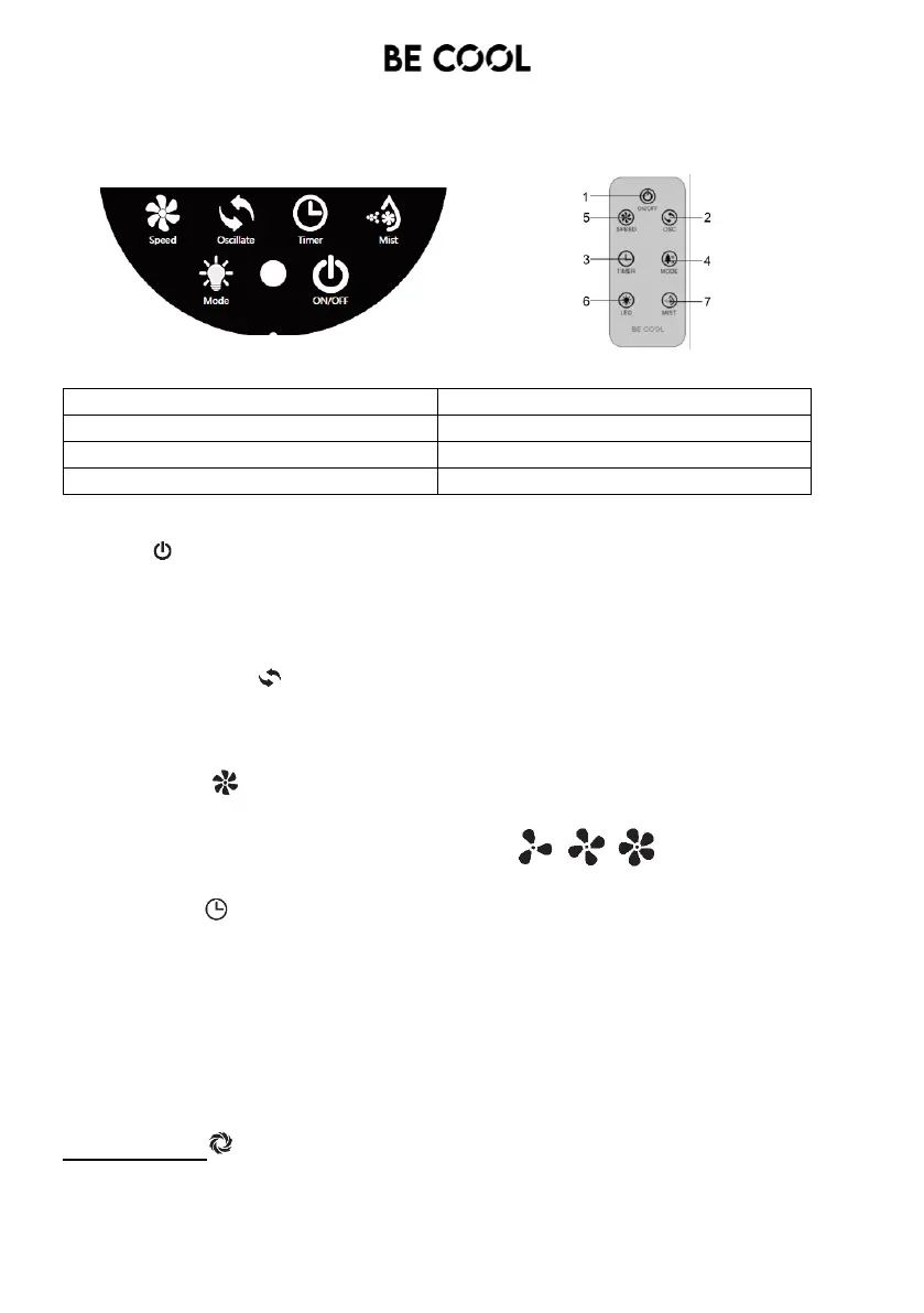 Press this button to switch the fan on or off. This product has a memory function.