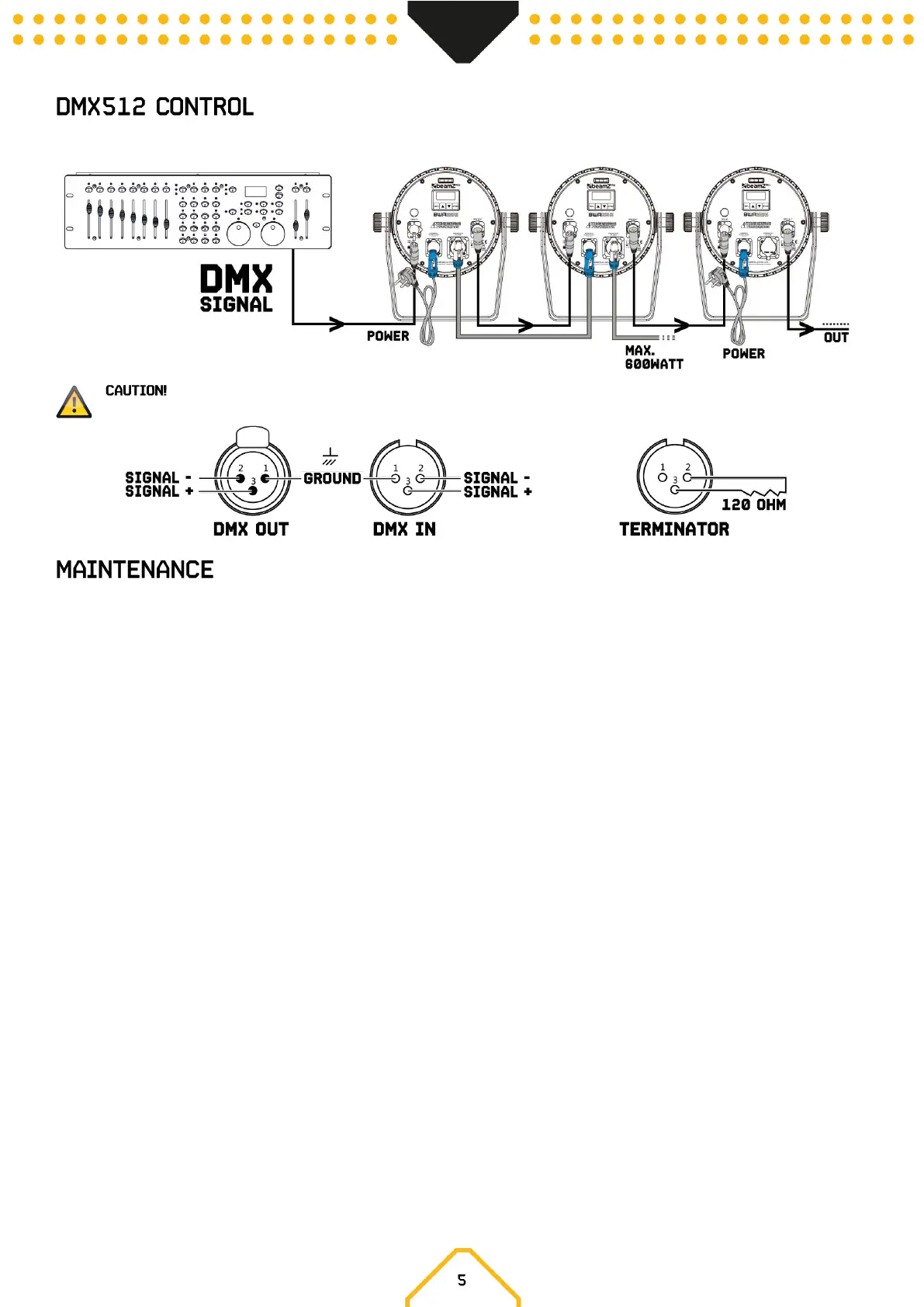between signal (-) and signal (+) and connect it to the DMX output of the last unit in the line.