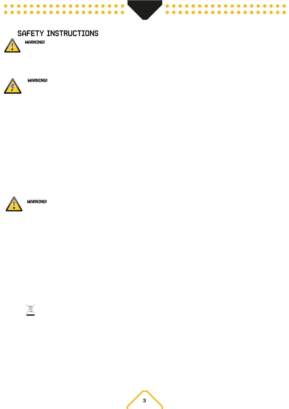 • Always disconnect power from the mains, when unit is not used or before cleaning! Only handle the power cord by the plug. Never pull out the