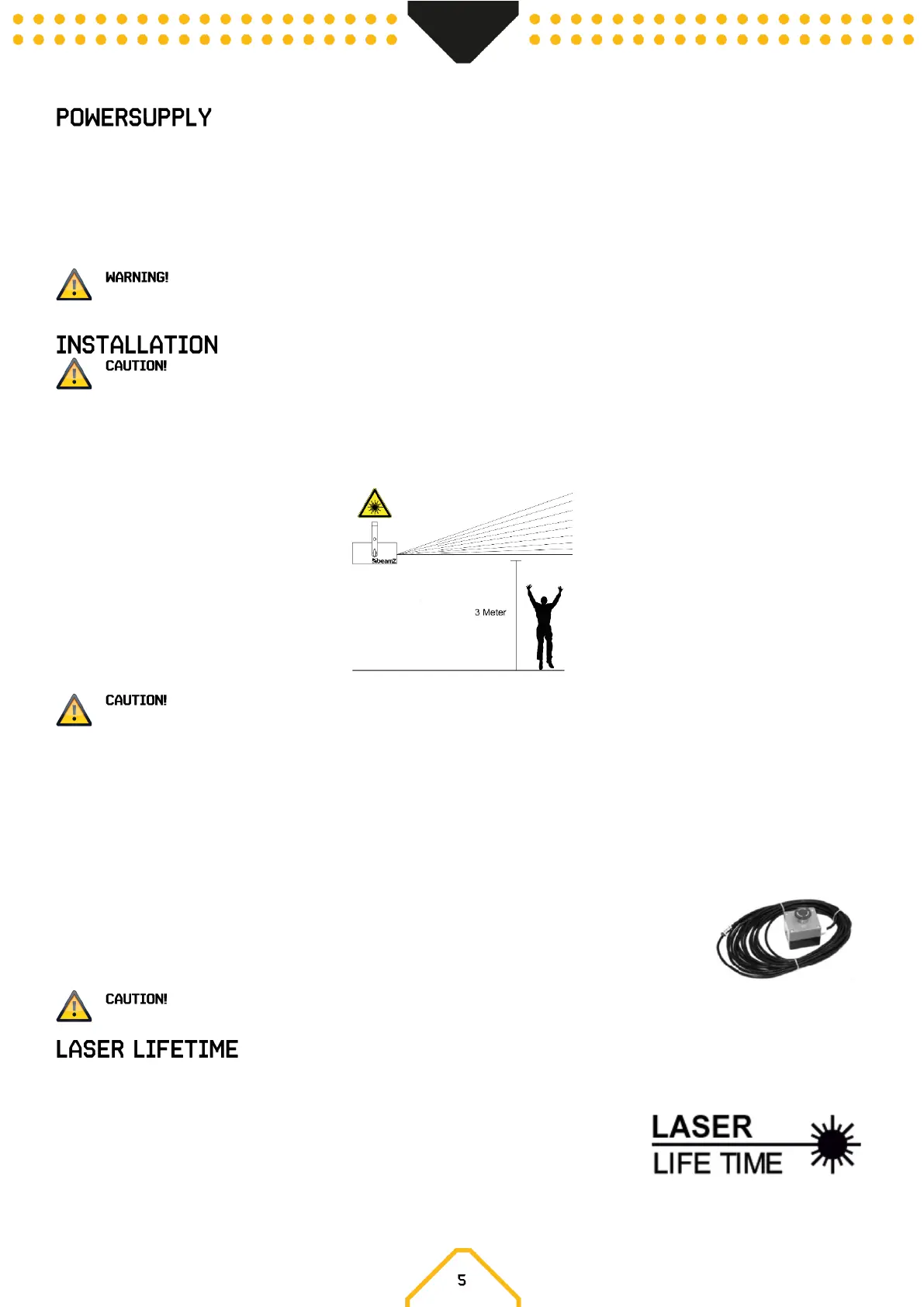 separation between the floor and the lowest laser light vertically. Additionally, 2.5 meters of horizontal separation is required between laser light and
