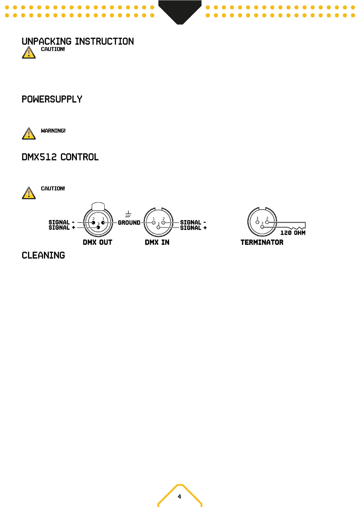 between signal (-) and signal (+) and connect it to the DMX output of the last unit in the line.