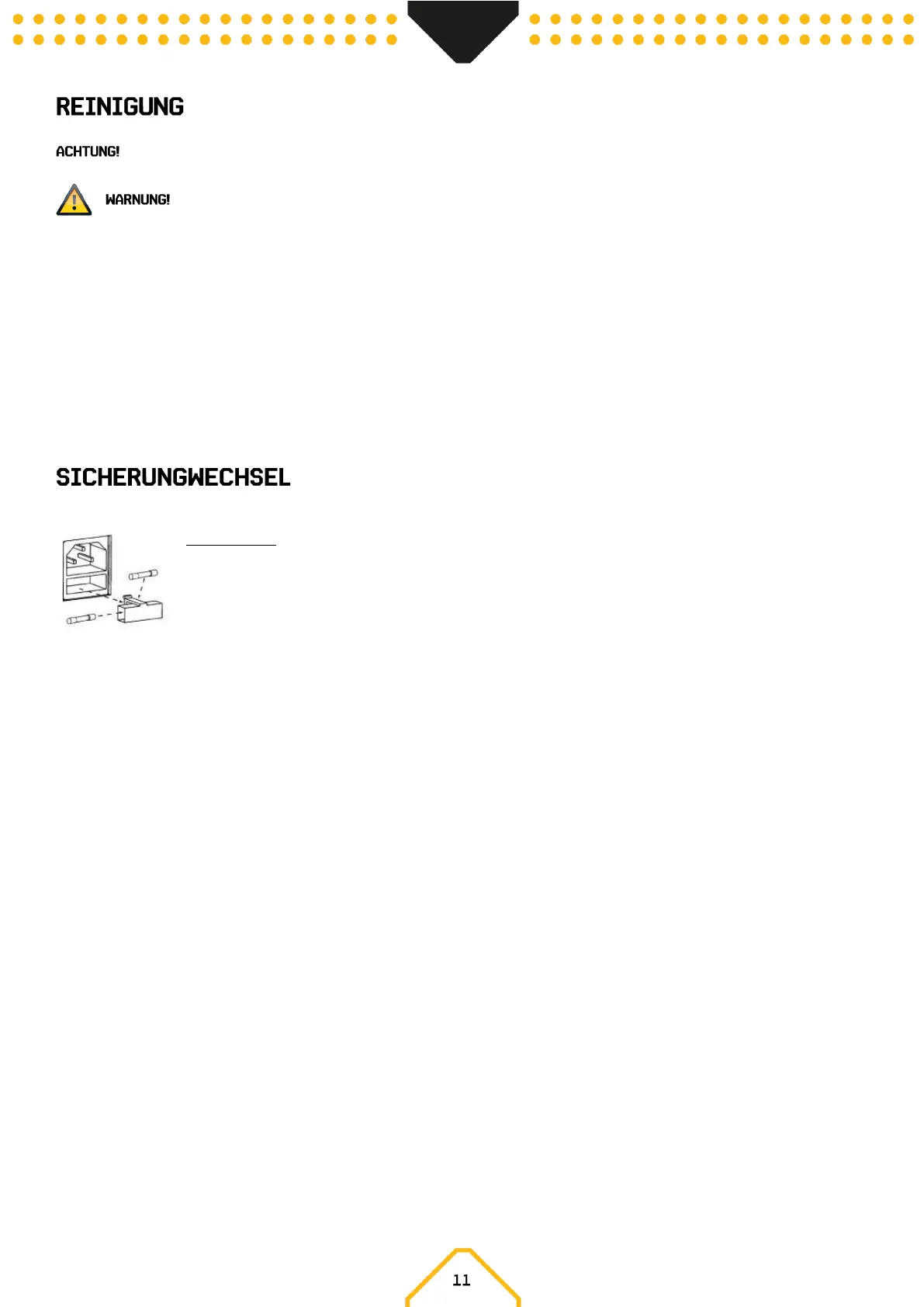 Es befinden sich keine Teile im Inneren des Gerätes, außer der Sicherung. Reparaturen und Servicearbeiten dürfen nur von autorisierten