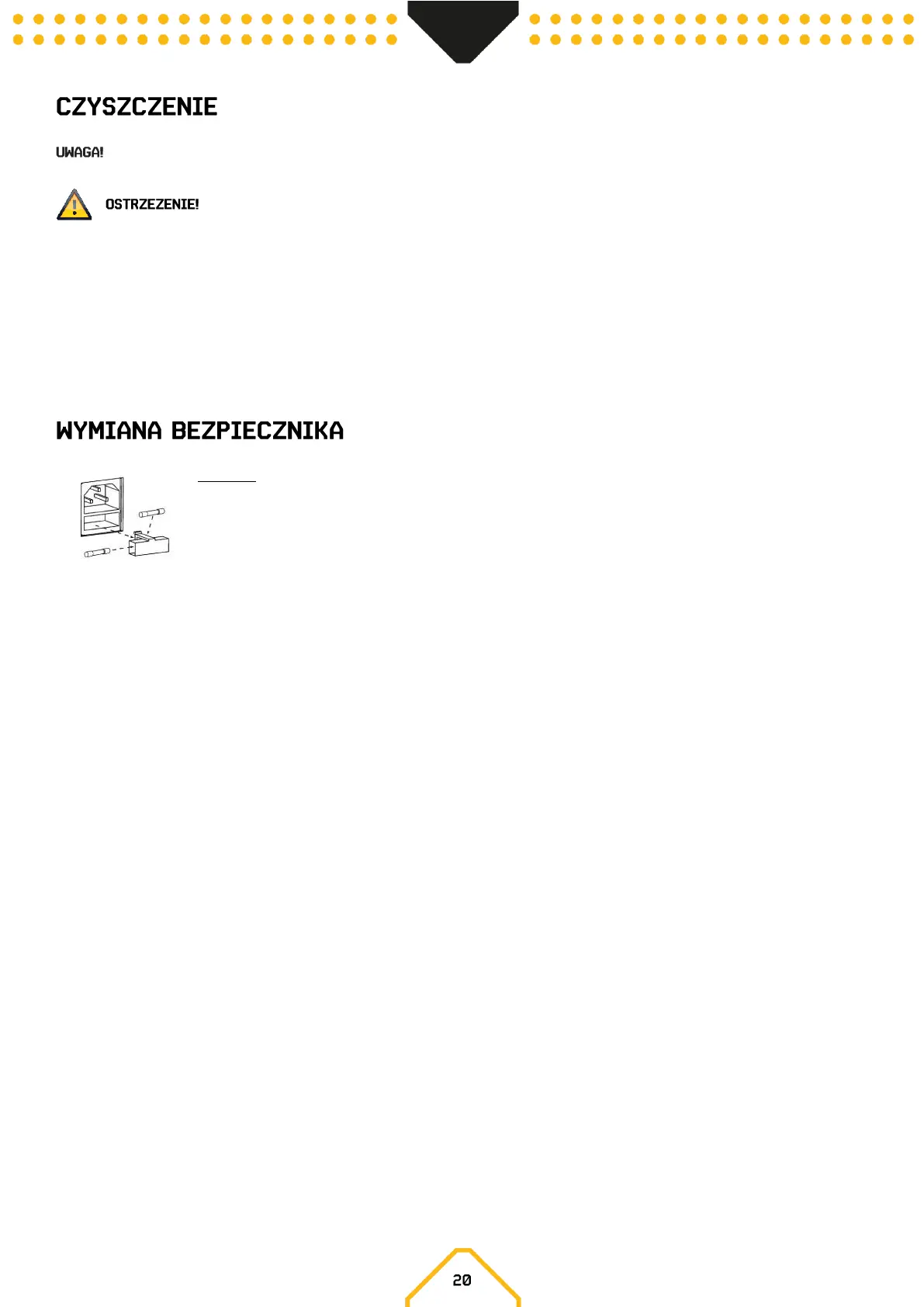 Jeśli bezpiecznik jest uszkodzony, należy wymienić bezpiecznik tego samego rodzaju i wartości. Przed wymianą bezpiecznika odłącz przewód zasilający.