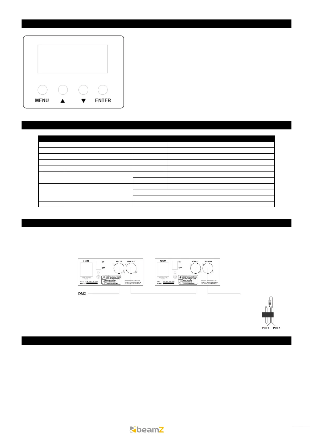 entre la señal (-) y la señal (+) en un conector XLR de 3 pines, que conectará a la salida DMX de la última