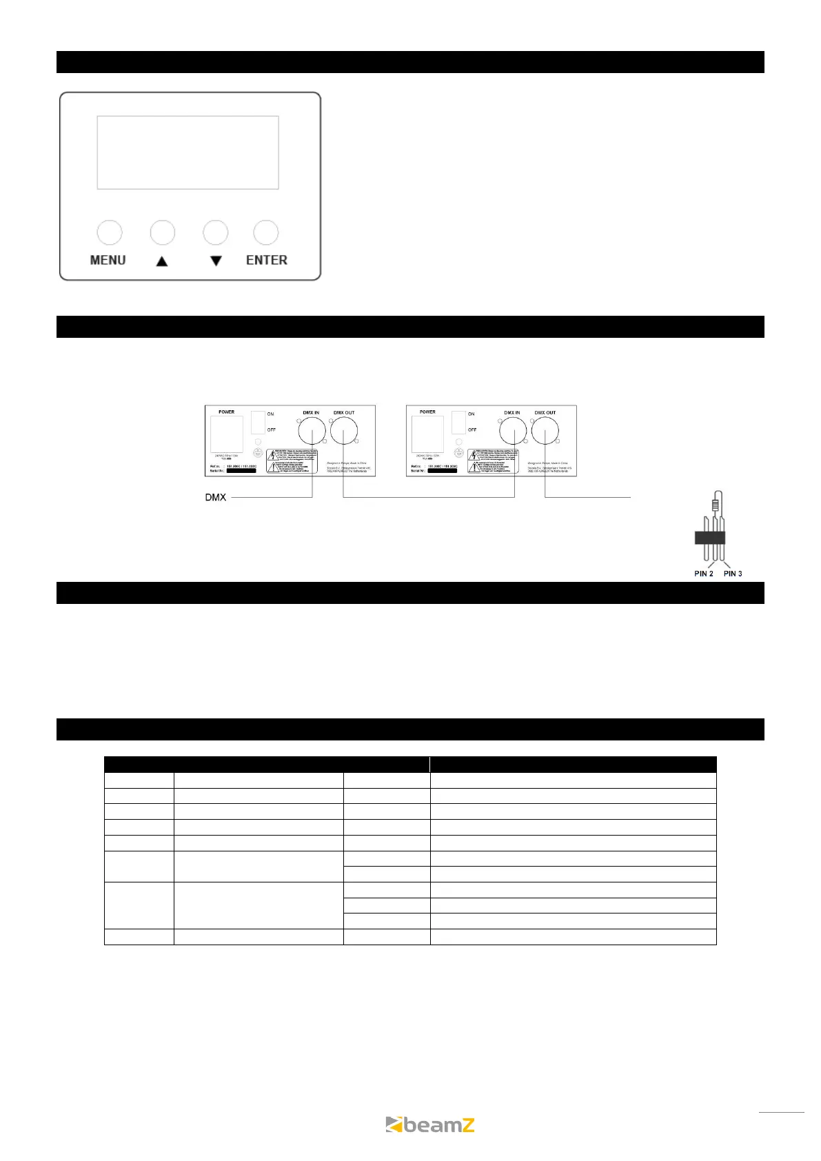 first unit in a DMX chain. Always connect the output of one unit with the input of the next unit until all units are connected.