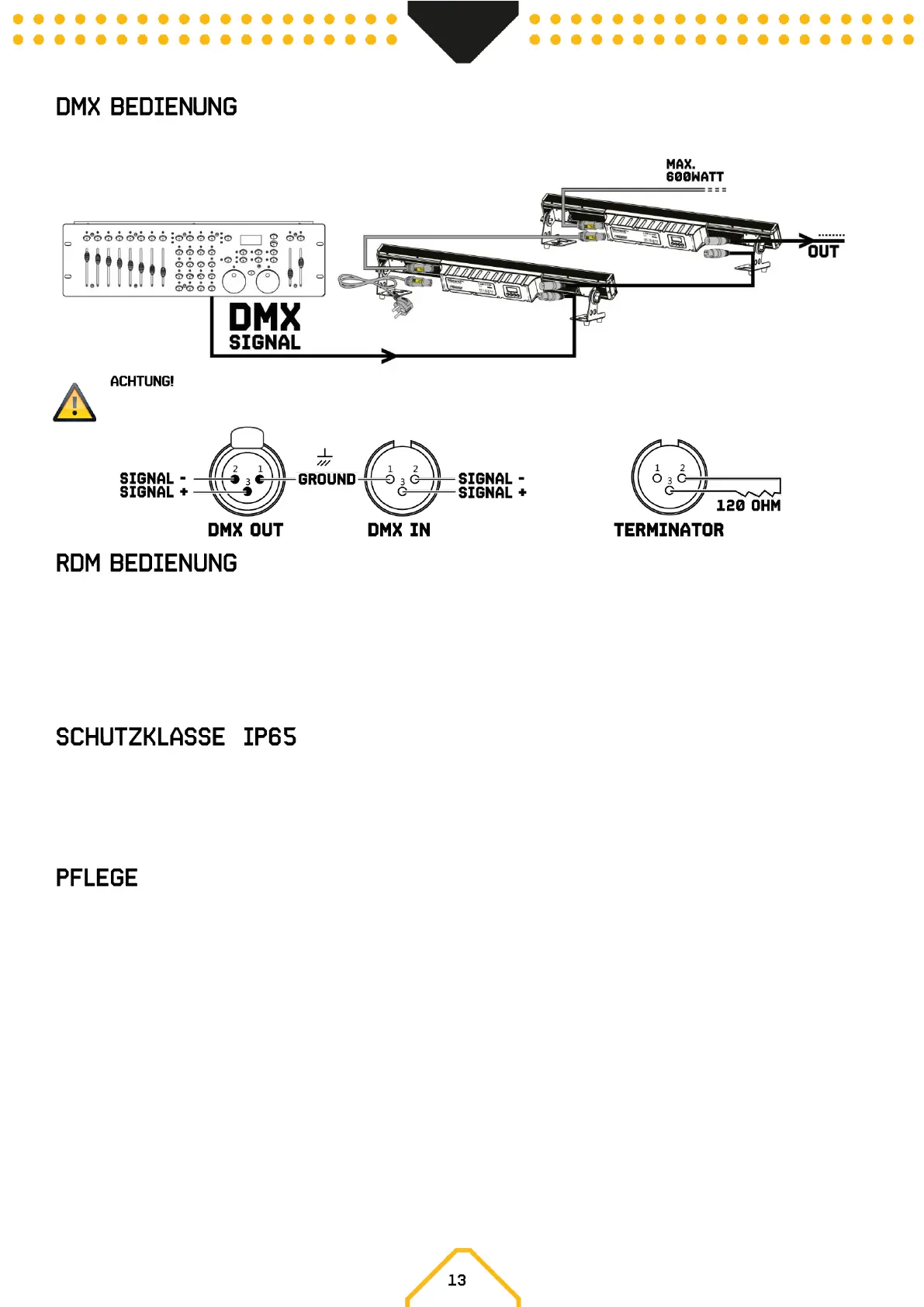 verbinden. Verbinden Sie den DMX-Ausgang immer mit dem nächsten DMX-Eingang des nächsten Geräts, bis alle Geräte angeschlossen sind.