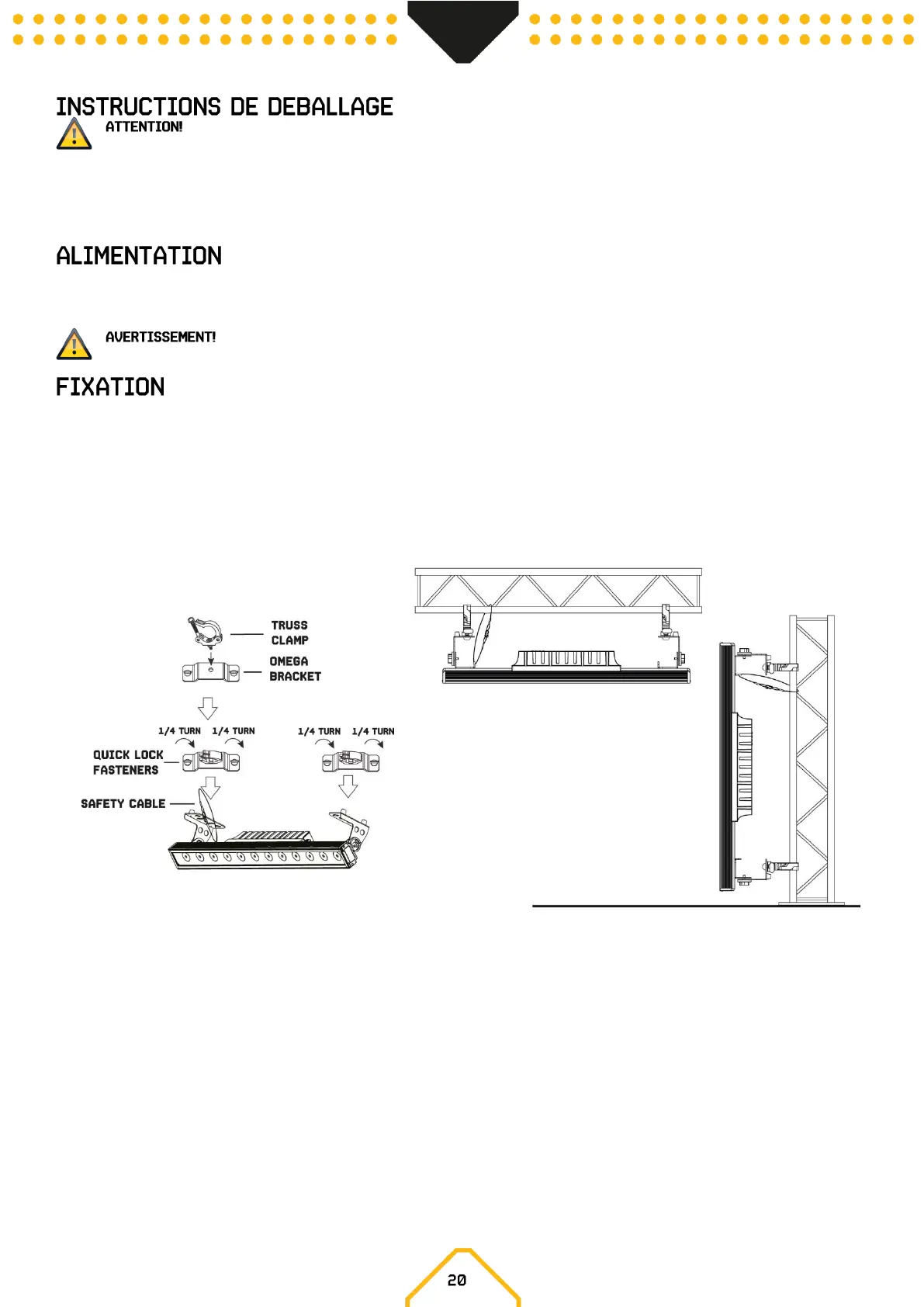 Lors de toute installation, respectez toujours les directives européennes et nationales concernant l’accrochage des produits, les structures et toutes les
