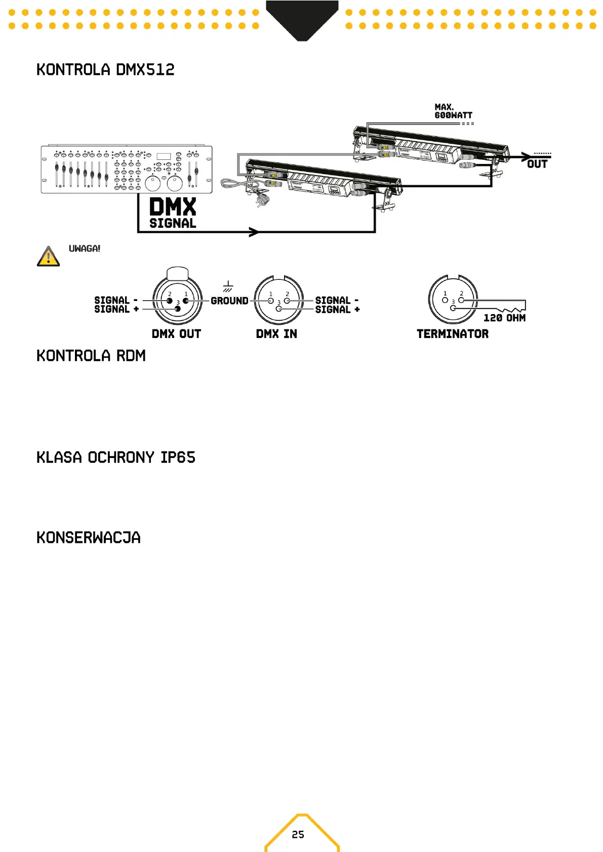 sygnałem (-) a sygnałem (+) i podłącz go do wyjścia DMX ostatniego urządzenia w linii.