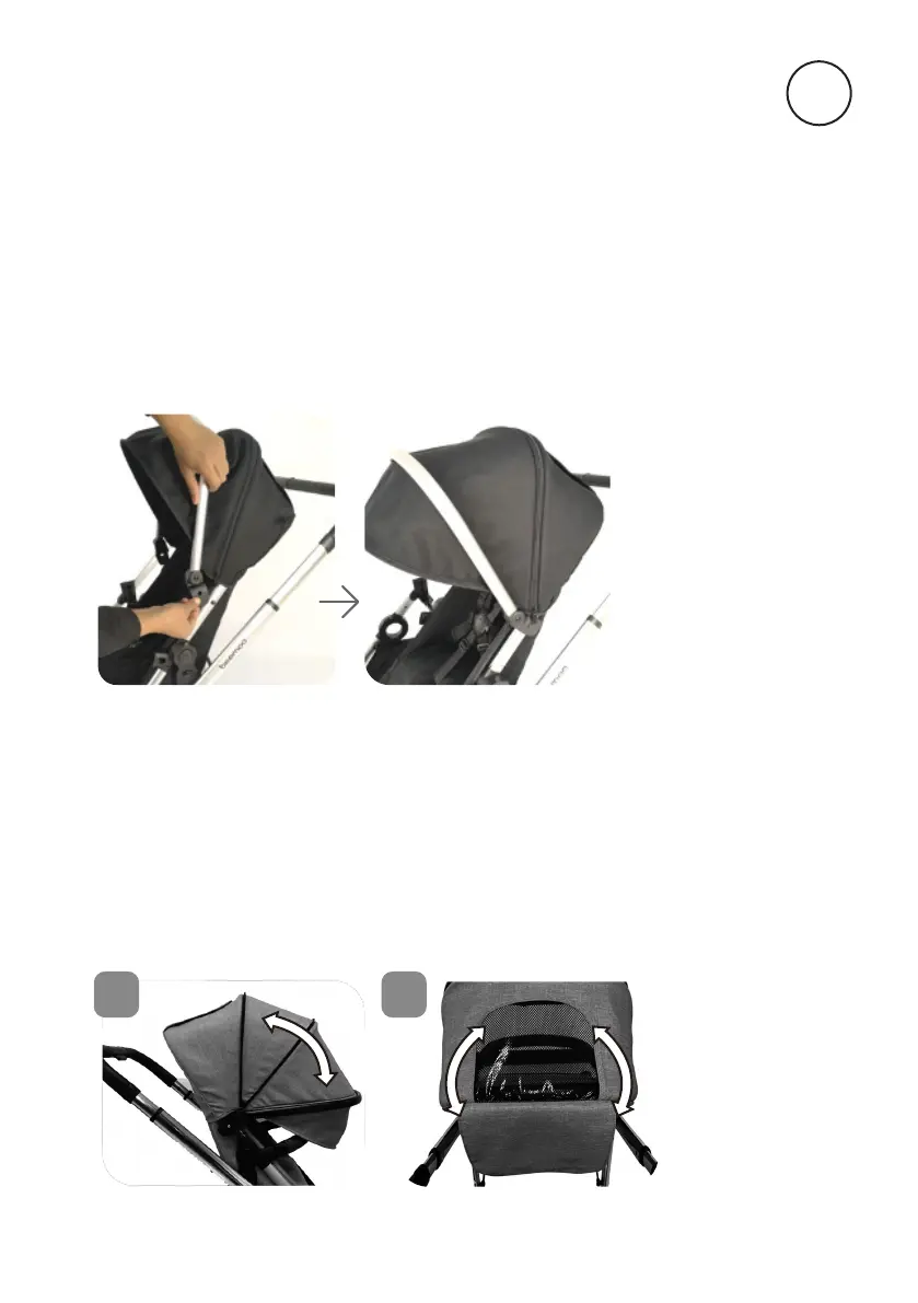 2. Løft kalechens baglåg for at se barnet i klapvognen og få yderlig-