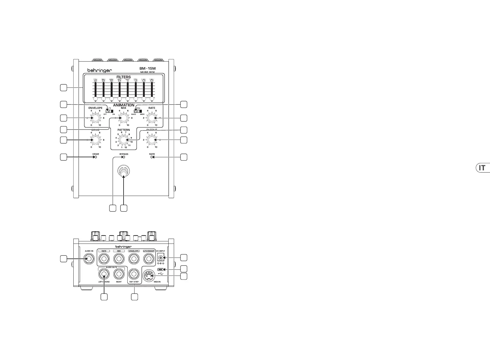 11. BYPASS LED– Indica se l'eetto è attivo o bypassato (verde =