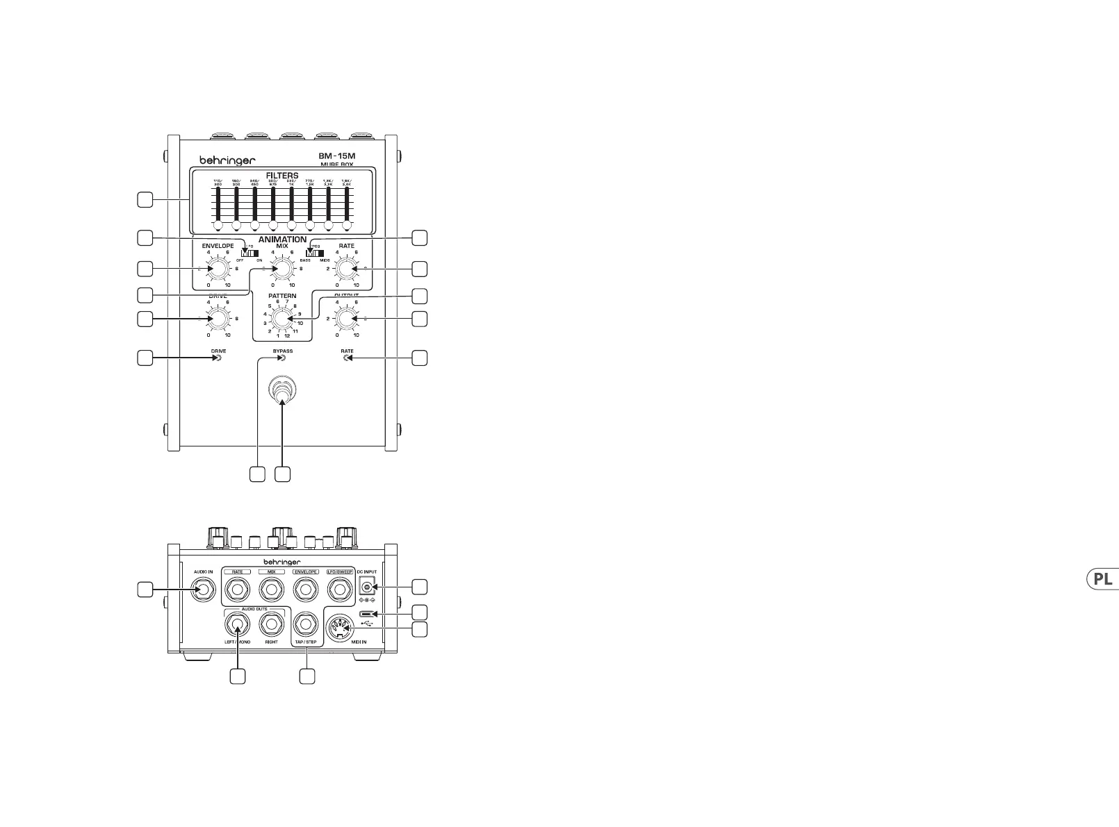 2. DRIVE – Reguluje poziom sygnału wejściowego.