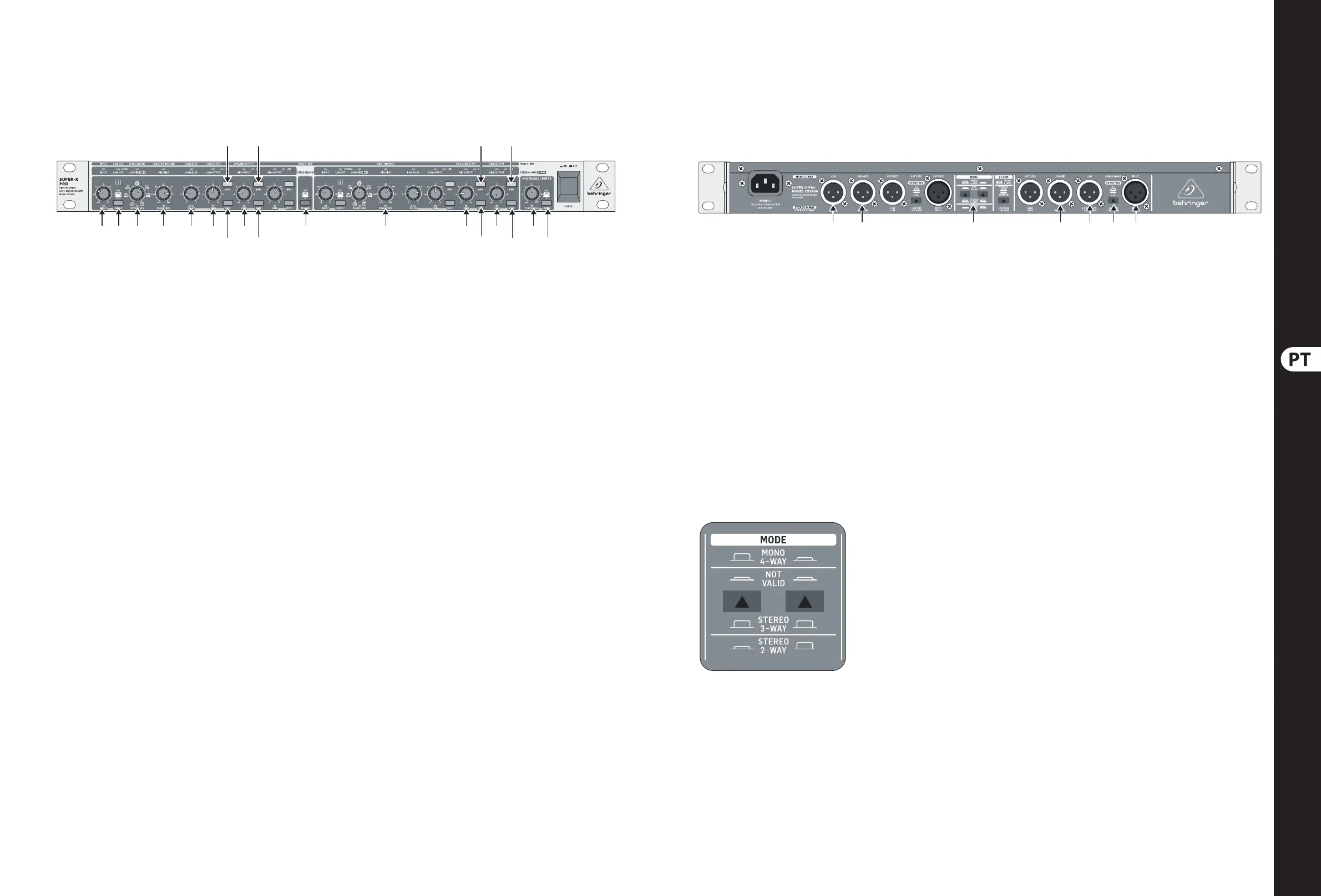Posicionamento correto de ambos os interruptores MODE para o funcionamentodo canal-mono 4