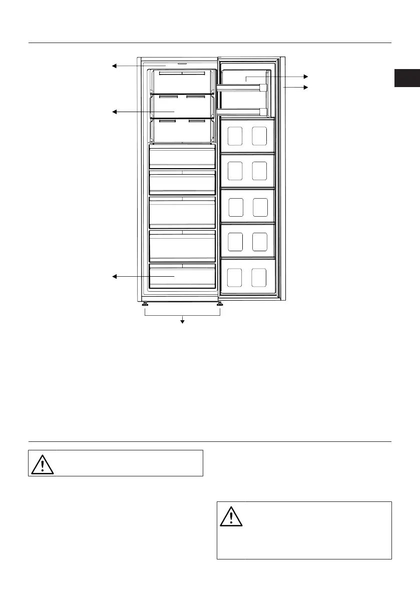 1 Verstellbarers Türregal 2 Elektronische Anzeige