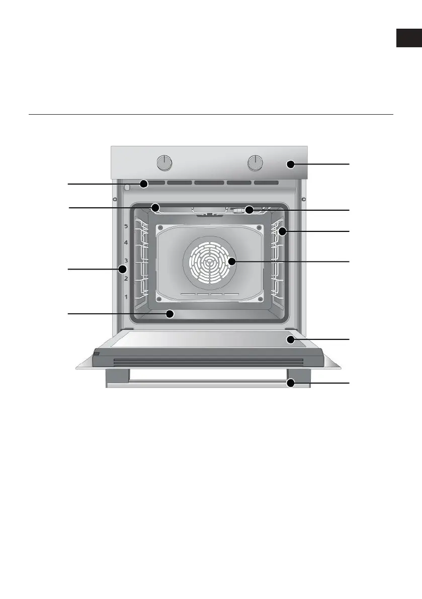 7 Lower heater (under the steel plate) 8 Shelf positions