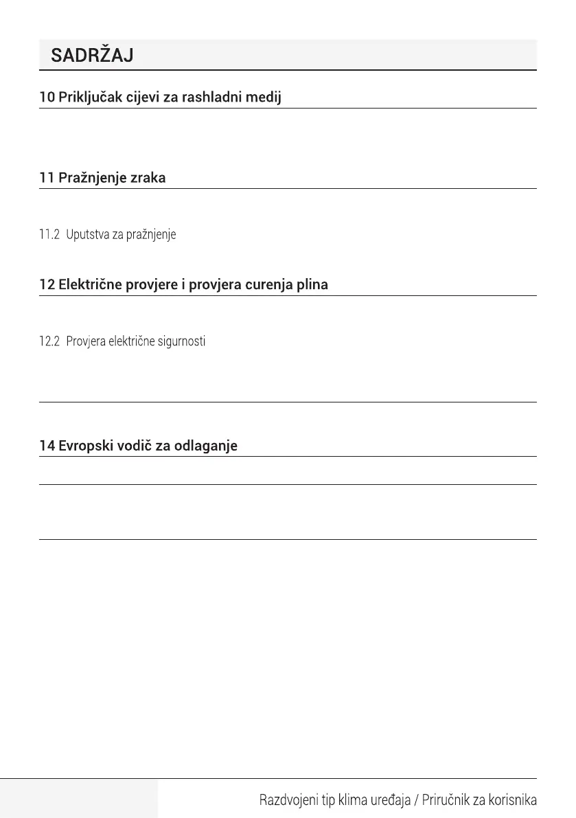 10.2 Uputstvo za povezivanje cijevi za vanjsku jedinicu . . . . . . . . . . . . . . . . . . . . . . . . . . . . . . . . . . . . . . . . 255
