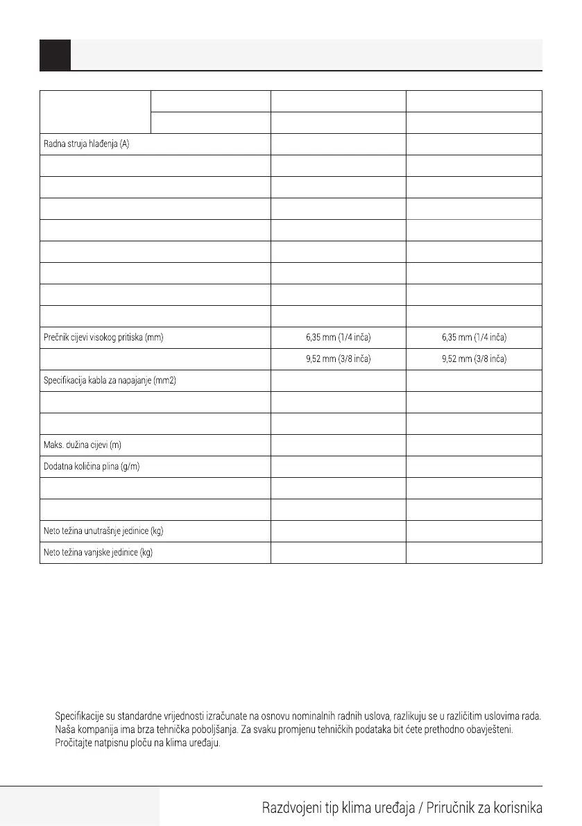 Nivo pritiska buke - vanjska jedinica (dBA) 54,0 54,5