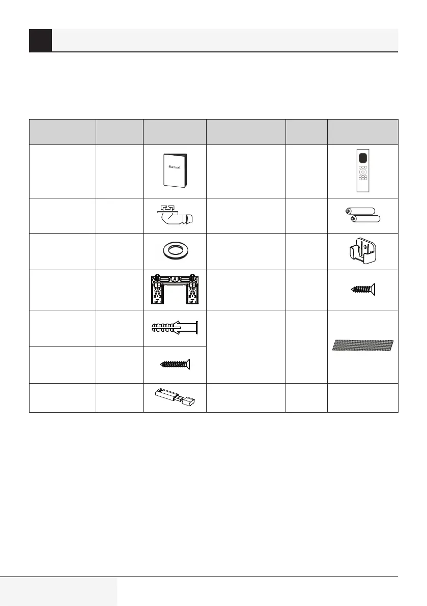 shock and fire, or cause the equipment to fail. The items are not included with the air conditioner must