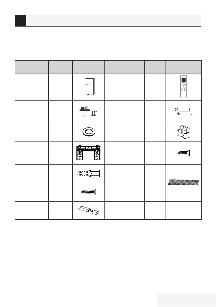 Sistemi i ajrit të kondicionuar vjen me aksesorët (pajisjet ndihmëse) të mëposhtme. Përdorni të gjitha