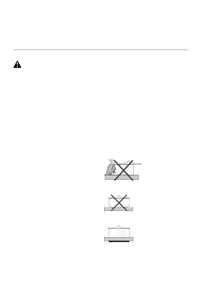 pots. Aluminium deteriorates the hob sur-