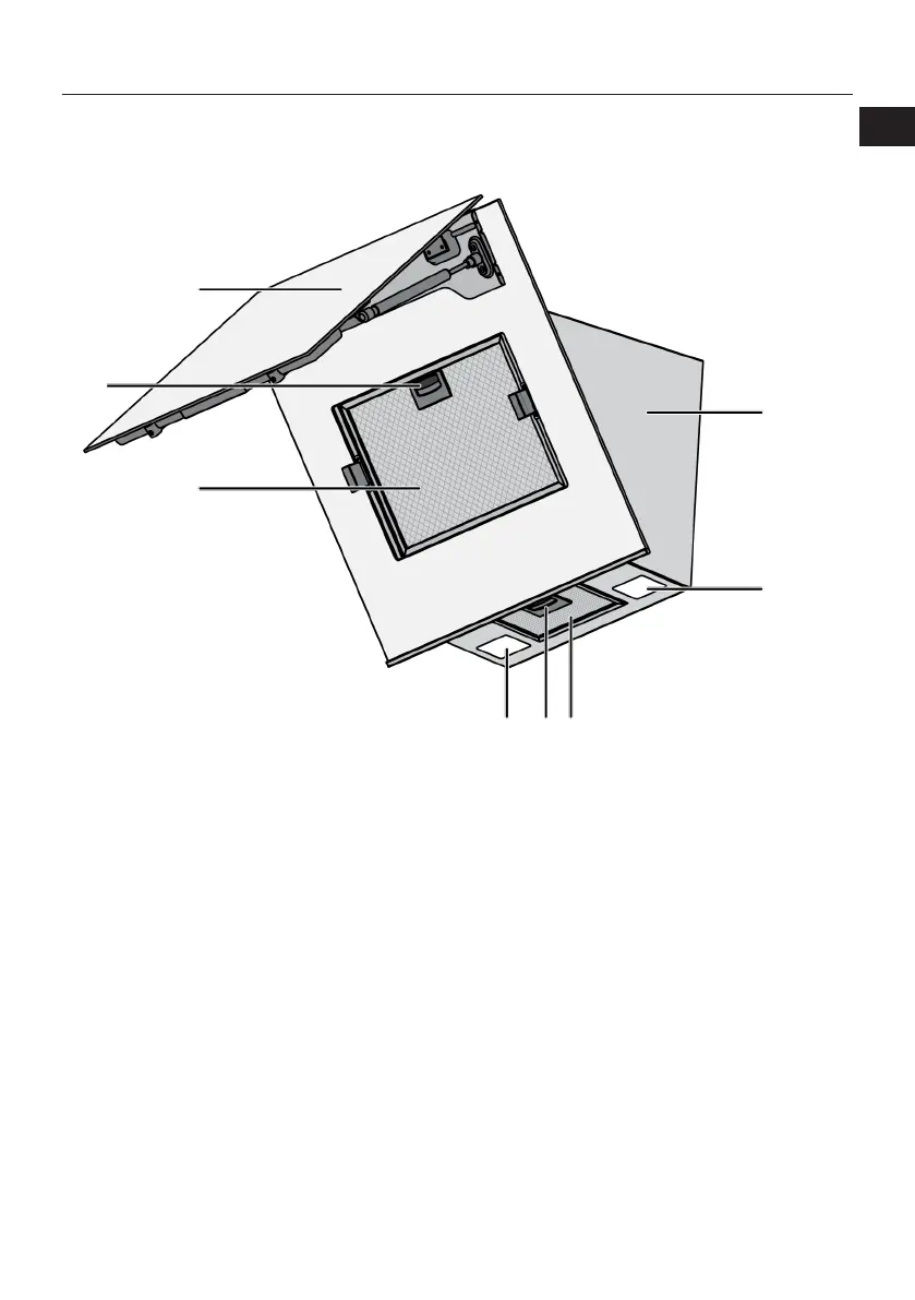 7 Blokada filtra aluminiowego 8 Szklana pokrywa okapu