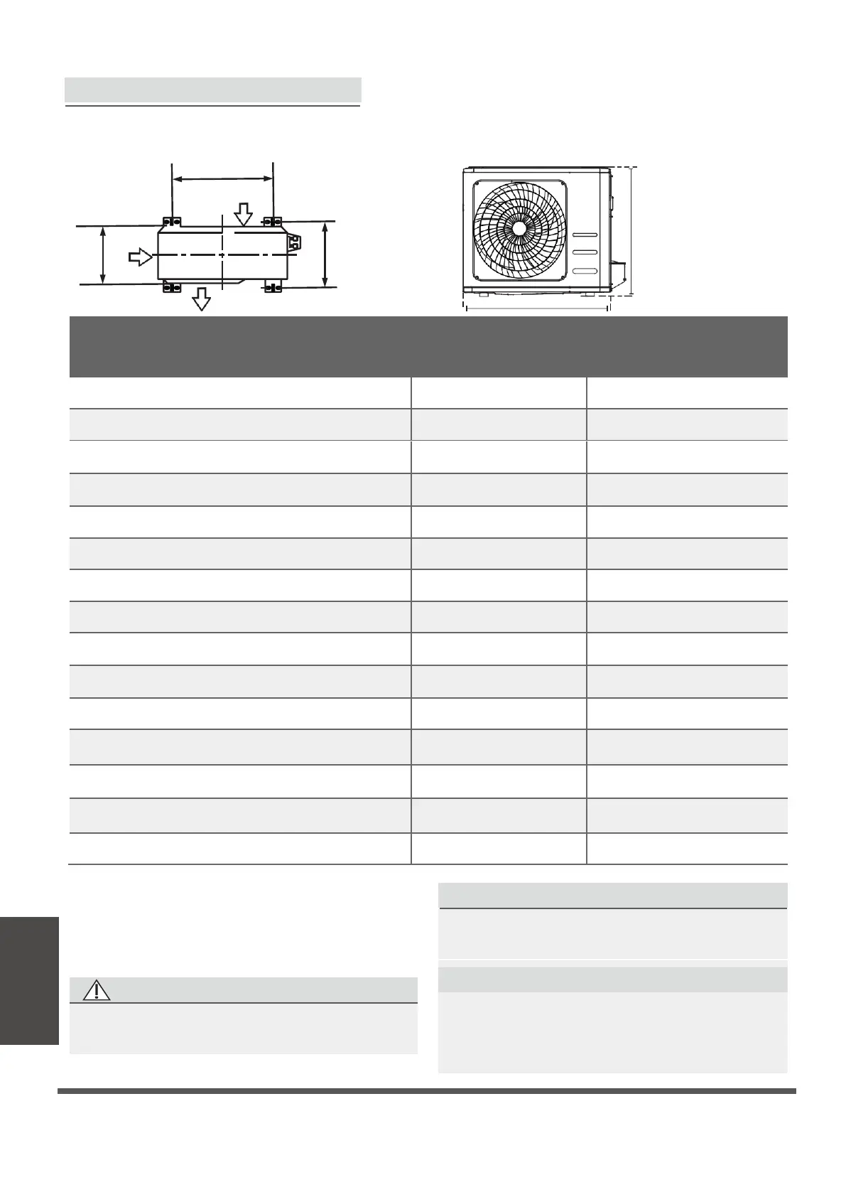 Berikut ini adalah daftar berbagai ukuran unit luar ruangan dan jarak antara kaki pemasangannya. Siapkan