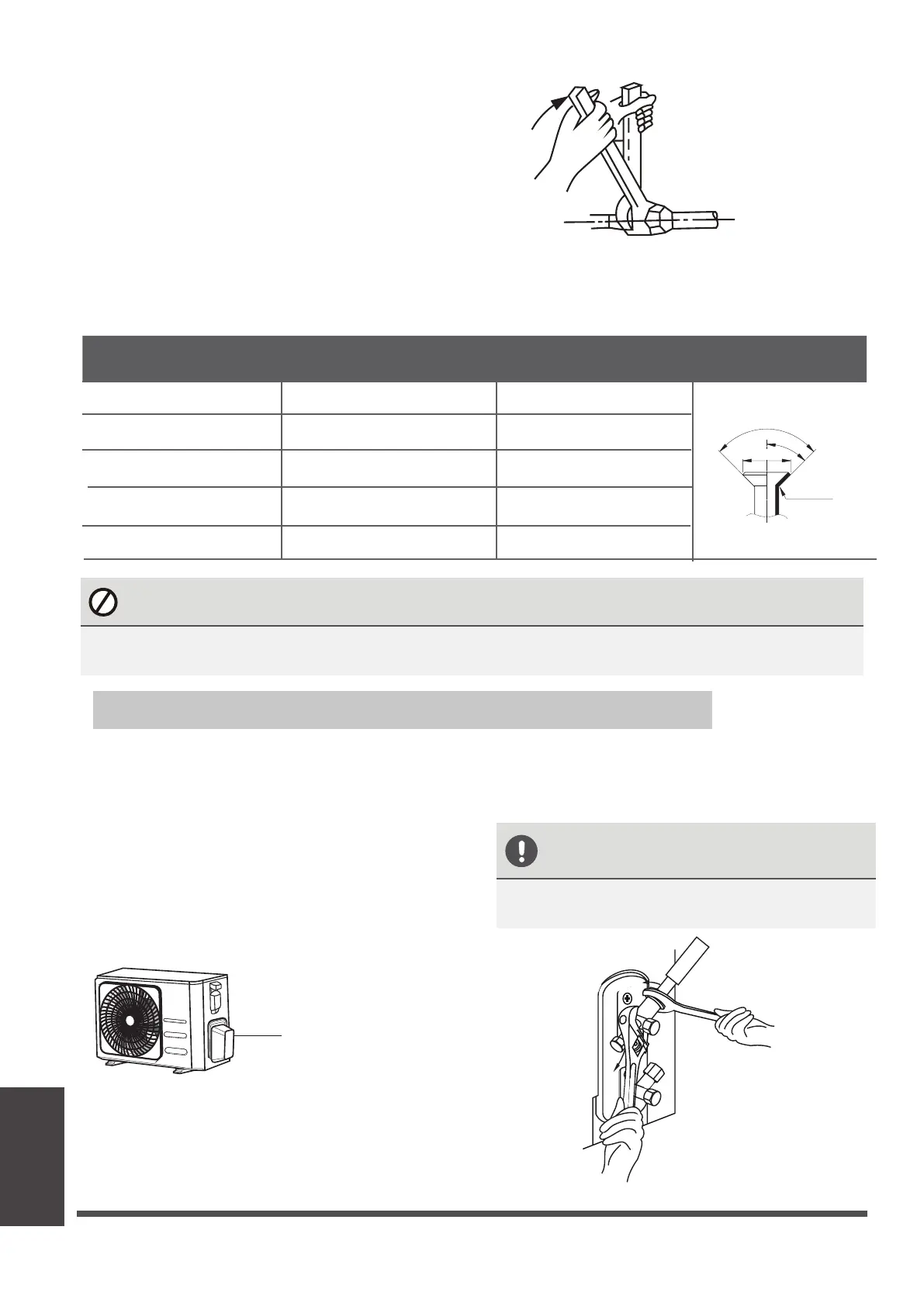 Excessive force can break the nut or damage the refrigerant piping. You must not exceed