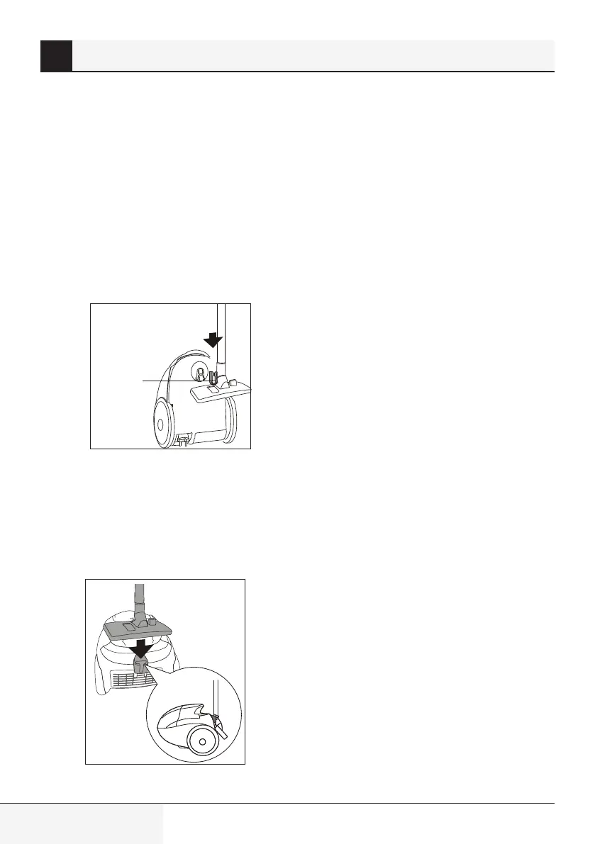 Introduceţi mânerul periei de parchet/carpetă în