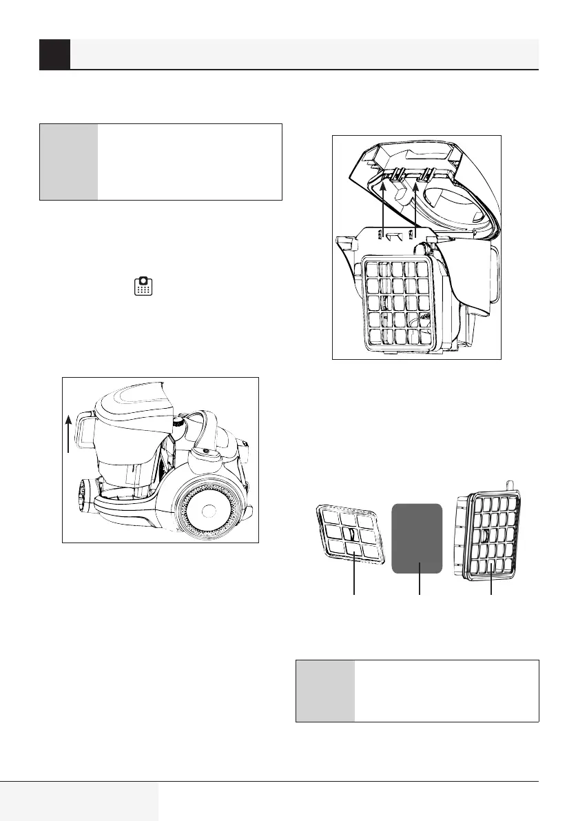3. Apucaţi recipientul pentru praf de mânerul lui