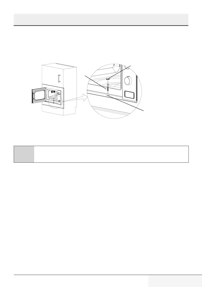 2. Hapni derën; fiksojeni furrën te rafti me vidën b te vrima e montimit e kompletit të rifiniturës. Më pas