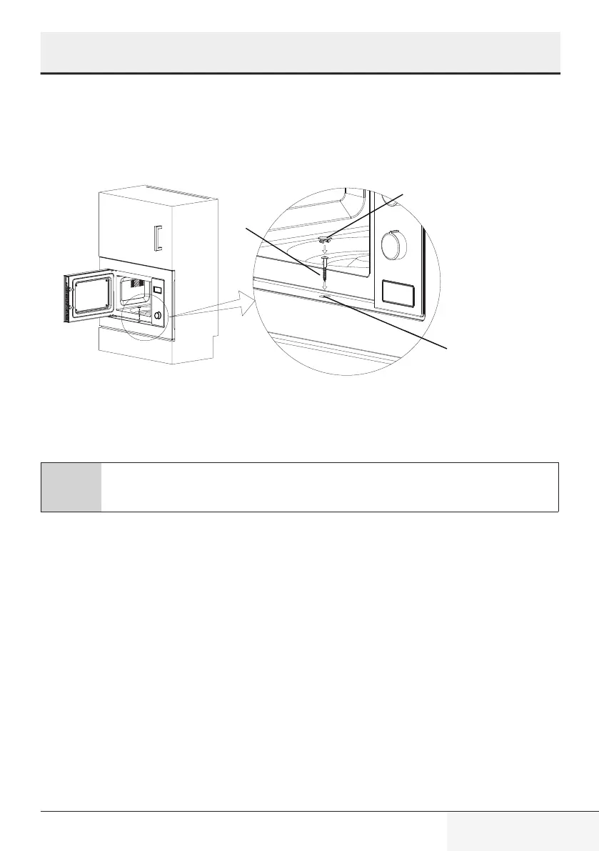 2. Odprite vrata; pritrdite pečico na omarico z vijakom B v namestitveni odprtini kompleta za obloge. Nato