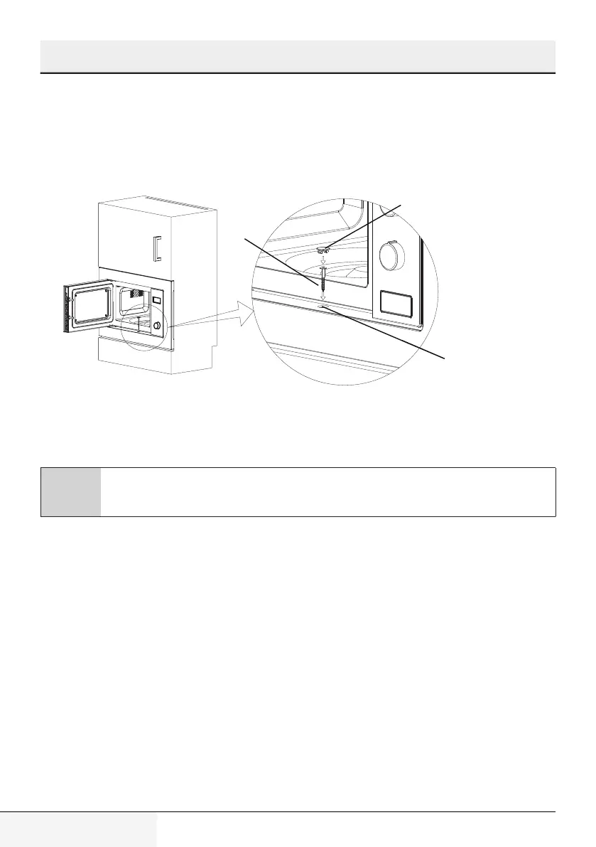 2. Otvorite vrata; fiksirajte rernu za ormar sa ZAVRTNJOM B na MESTU ZA UGRADNJU ZAVRŠNOG KITA.