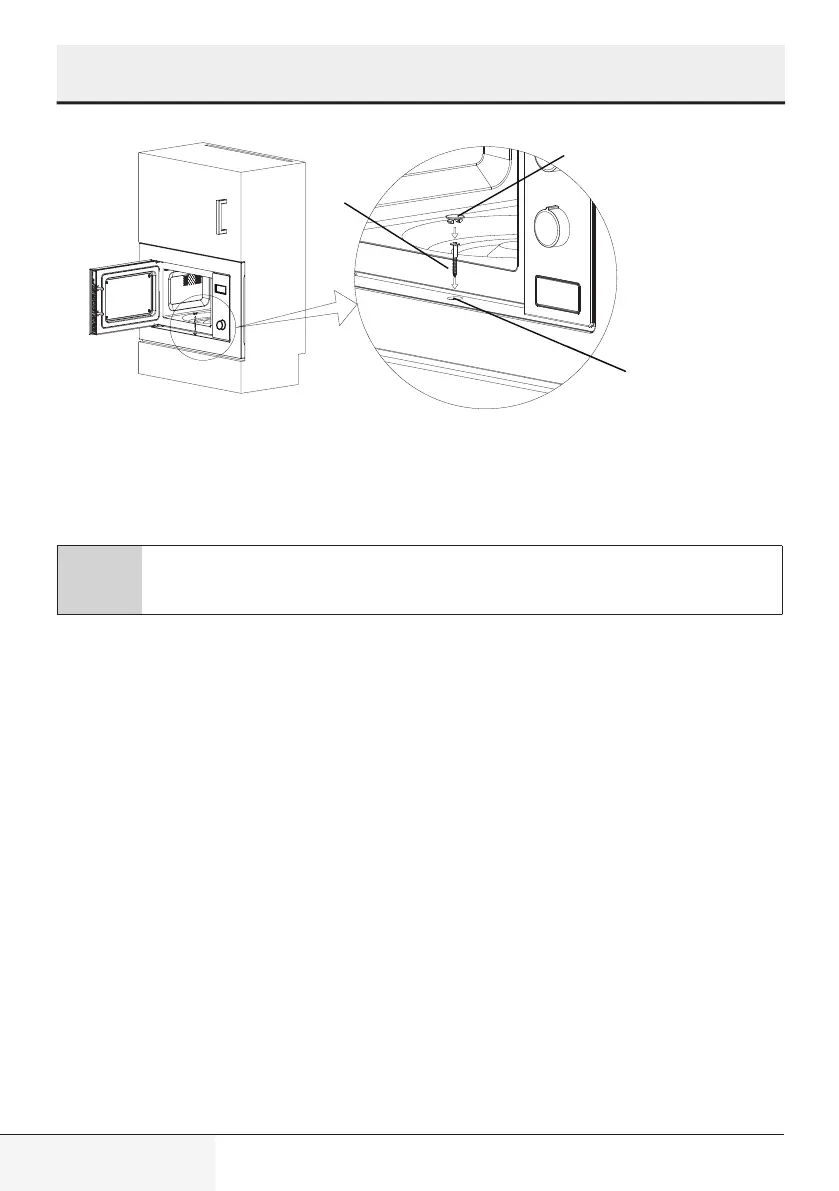 2. Aprire lo sportello; fissare il forno all’alloggiamento con la VITE B attraverso il FORO DI INSTALLAZIONE