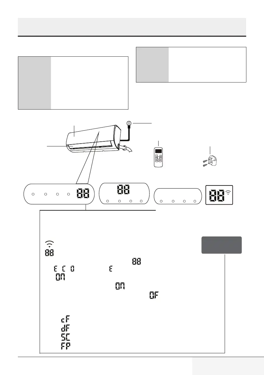 ” Displays temperature, operation feature and Error codes: