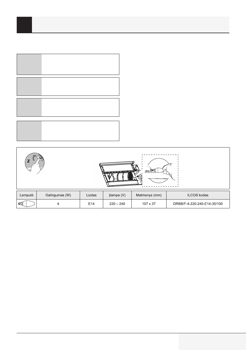 • Keičiame lemputę naudoti maks. 4 W lemputę