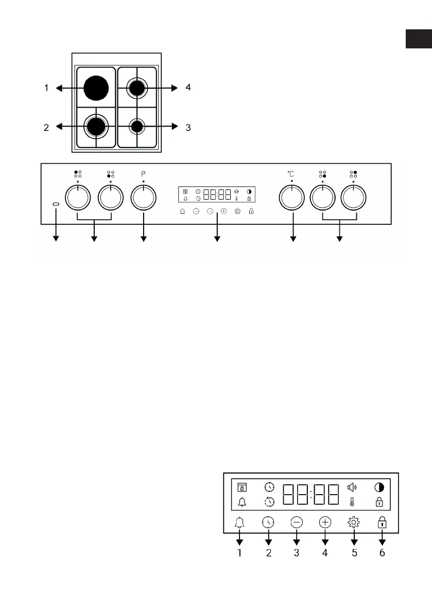 5 Temperature knob 6 Hob control knobs