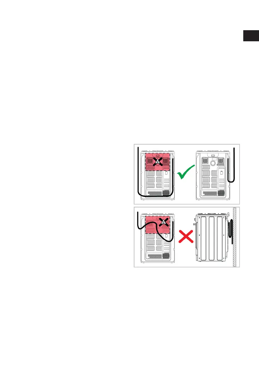 • Газовият маркуч не трябва да влиза в