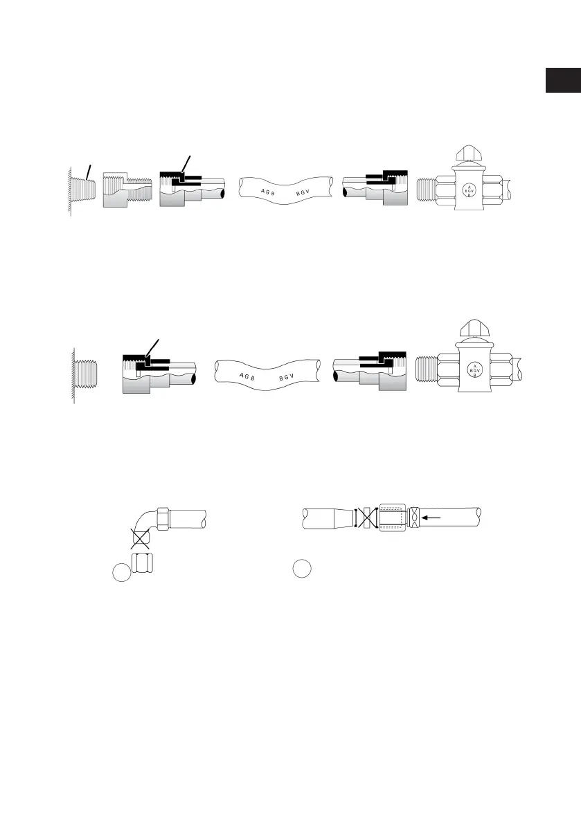 verbindingen in de handel (geval A). Anderzijds mag men bij de huidige montage geen dichtingsring gebruiken (geval B).