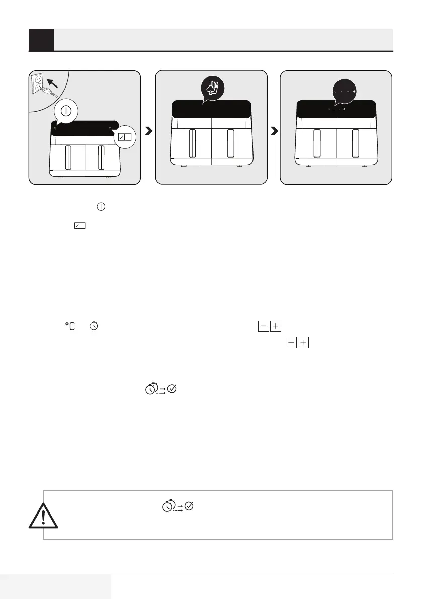 Press the ‘ ’ or ‘ ’ buttons to set the temperature or time. The “ ”symbol