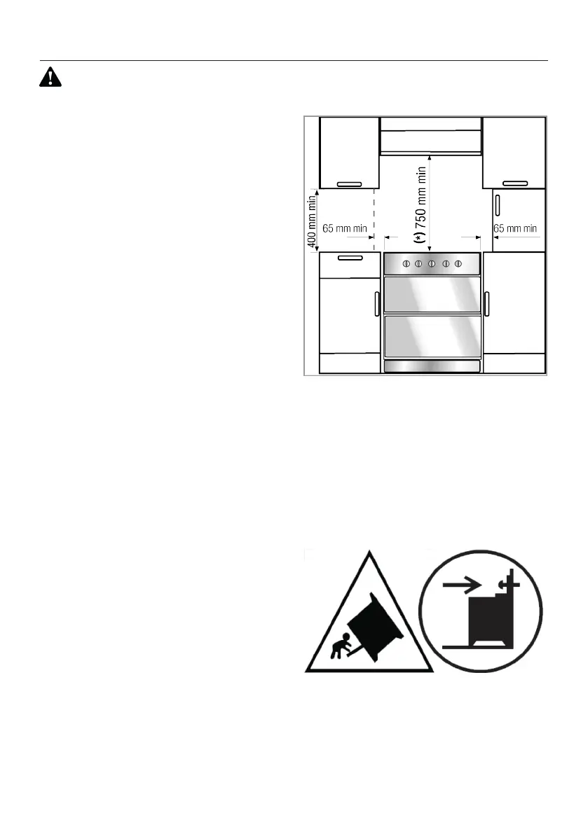 • If a cooker hood is to be installed above