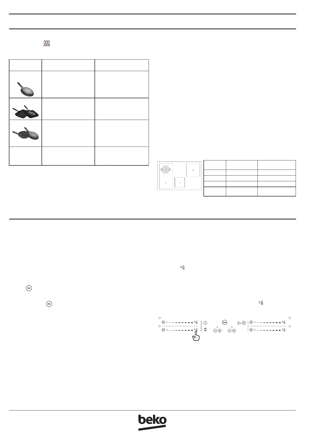 To ensure that the hob works properly, use pots of a suitable base diameter for