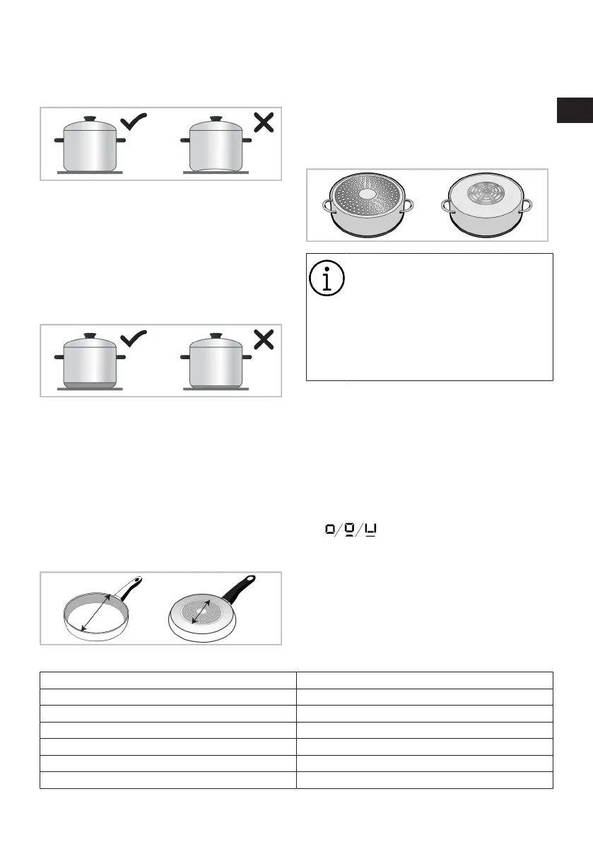 Diamètre de la zone de cuisson - mm Diamètre de la casserole - mm