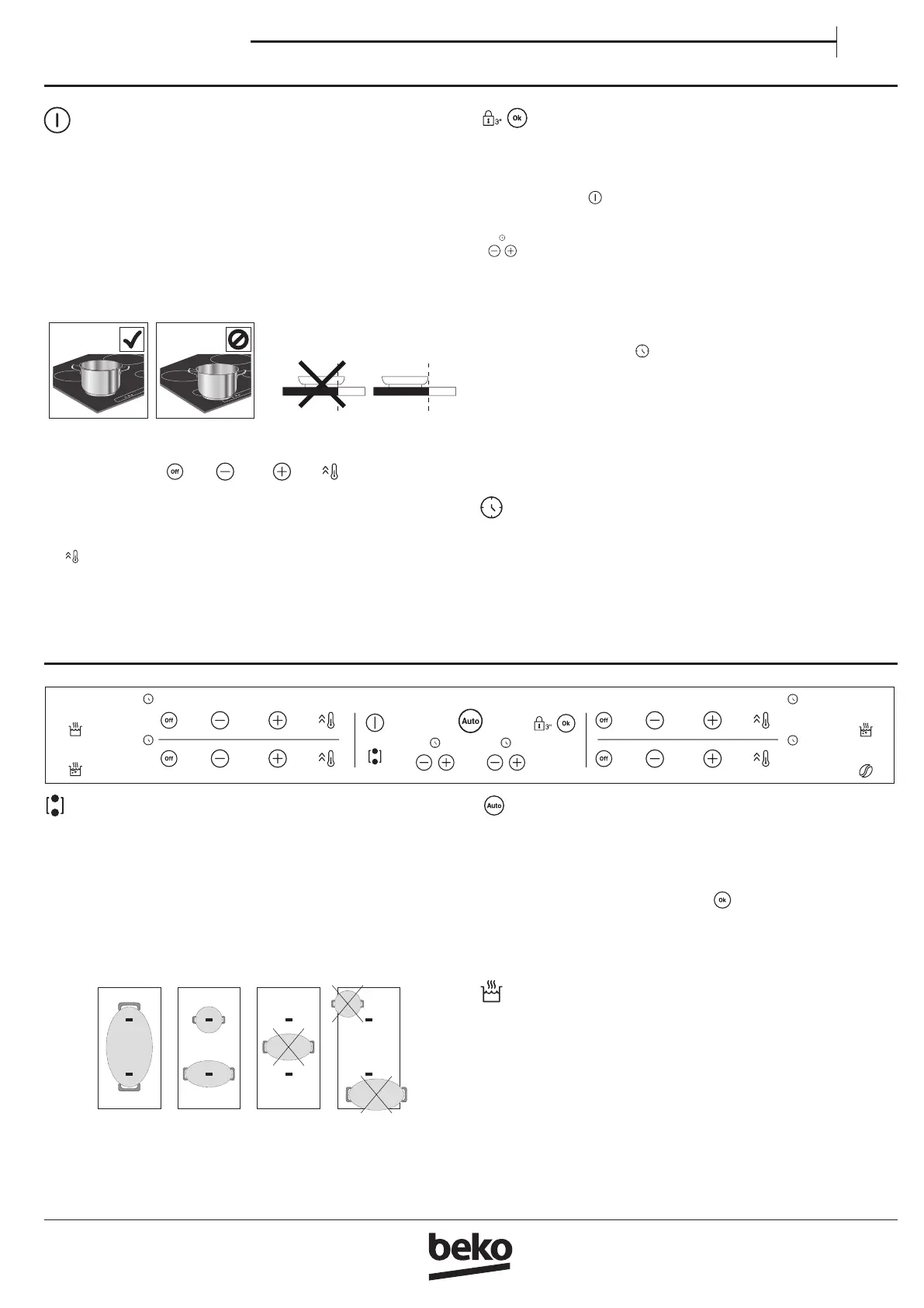 Die Symbole des Bedienfelds nicht mit dem Kochgeschirr bedecken.